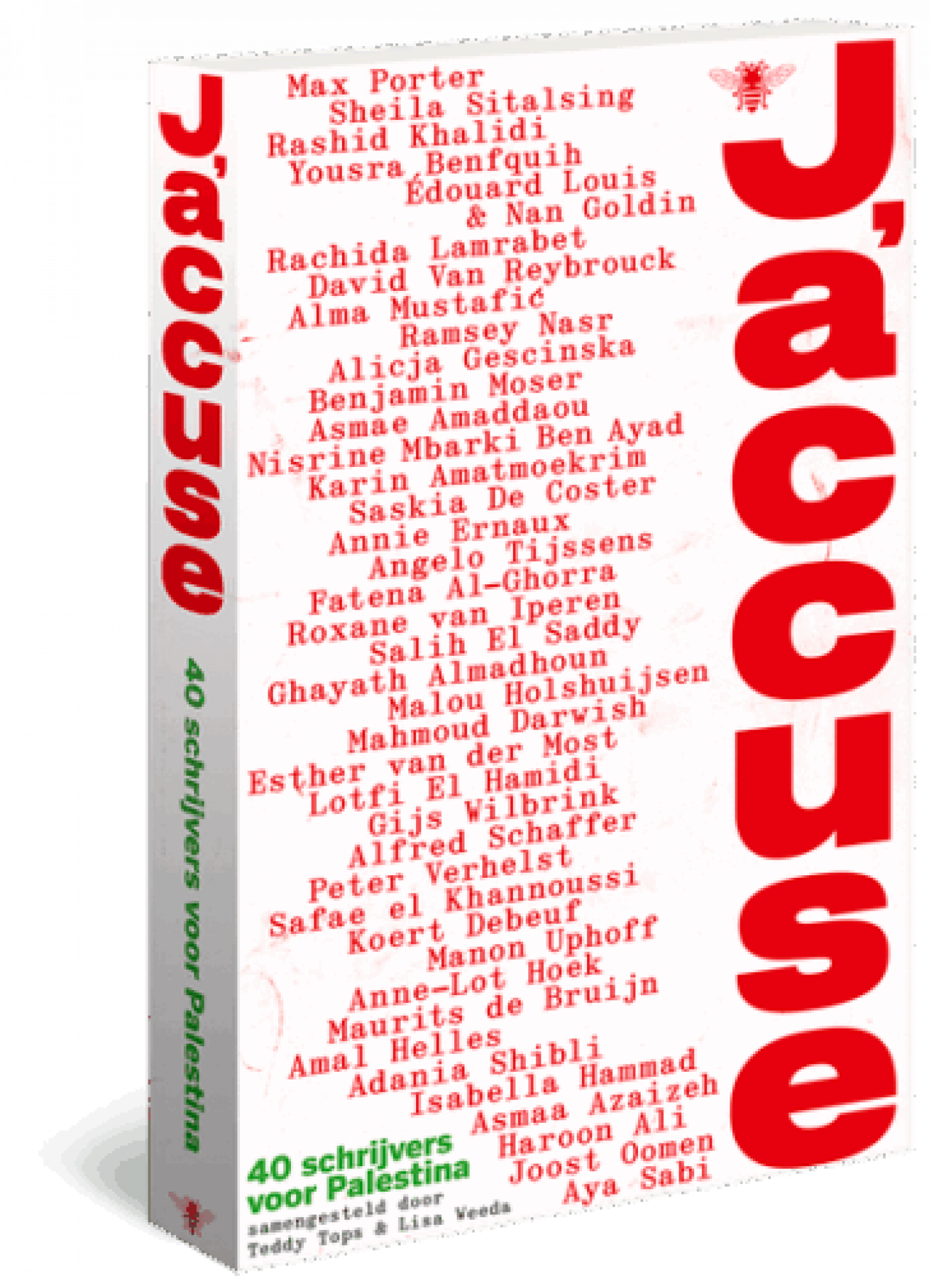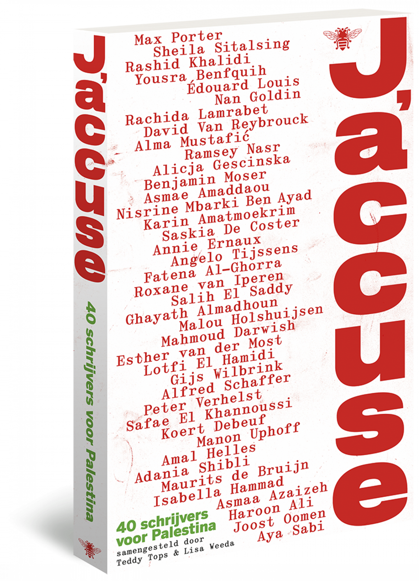 Veertig Nederlandse, Vlaamse én internationale schrijvers spreken zich in dit boek uit tegen het uitwissen van de Palestijnen. Omdat stil blijven geen optie is. Omdat woorden, ondanks alles, het enige zijn waarmee we kunnen duiden, bewaren, aanklagen en tot actie bewegen.