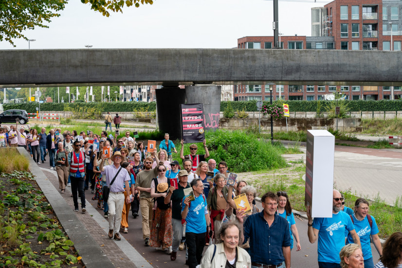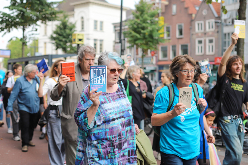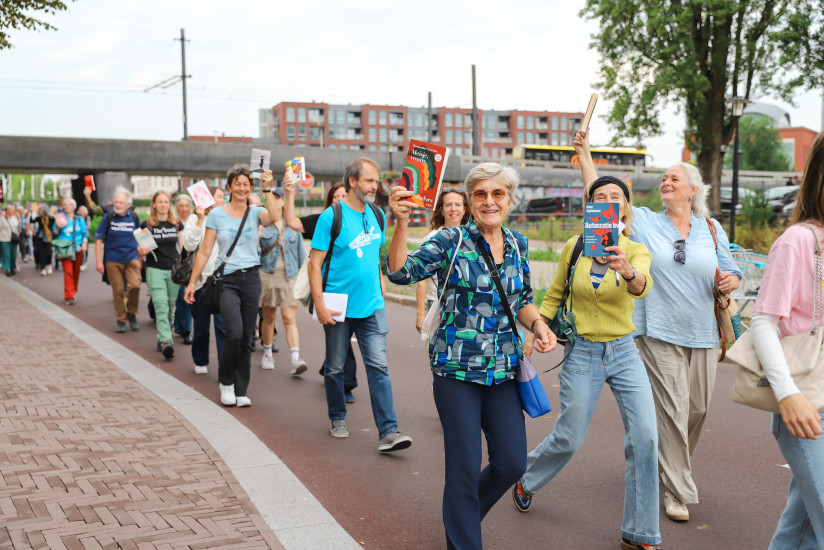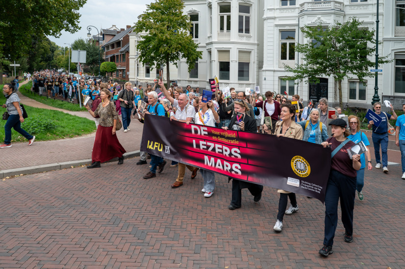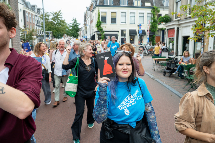 Op zaterdag 20 september trapten we ILFU 2025 daarom af met een mars van lezers, schrijvers en boekenliefhebbers dwars door de Utrechtse binnenstad. De mars vormde een symbolisch weerwoord van boekenliefhebbers tegen censuur, autocratie en andere ondemocratische bewegingen die overal ter wereld opduiken.